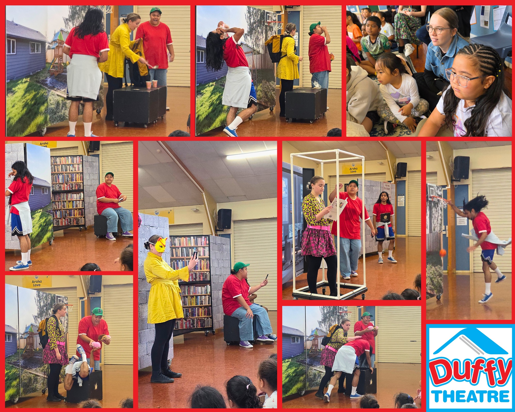 On Tuesday, 21 October, MWPS was buzzing with excitement as the Duffy Theatre performed their latest show for our tamariki. Our Year 0–4 learners enjoyed the first session at 10am, followed by our Year 5–6 audience at 11:45am. This year’s show followed Duffy, Scruffy, and their cool Aunty Ana, who had to move to Australia for her new job. To stay connected, they started a book club and wrote letters to each other, until one day the letters stopped arriving!